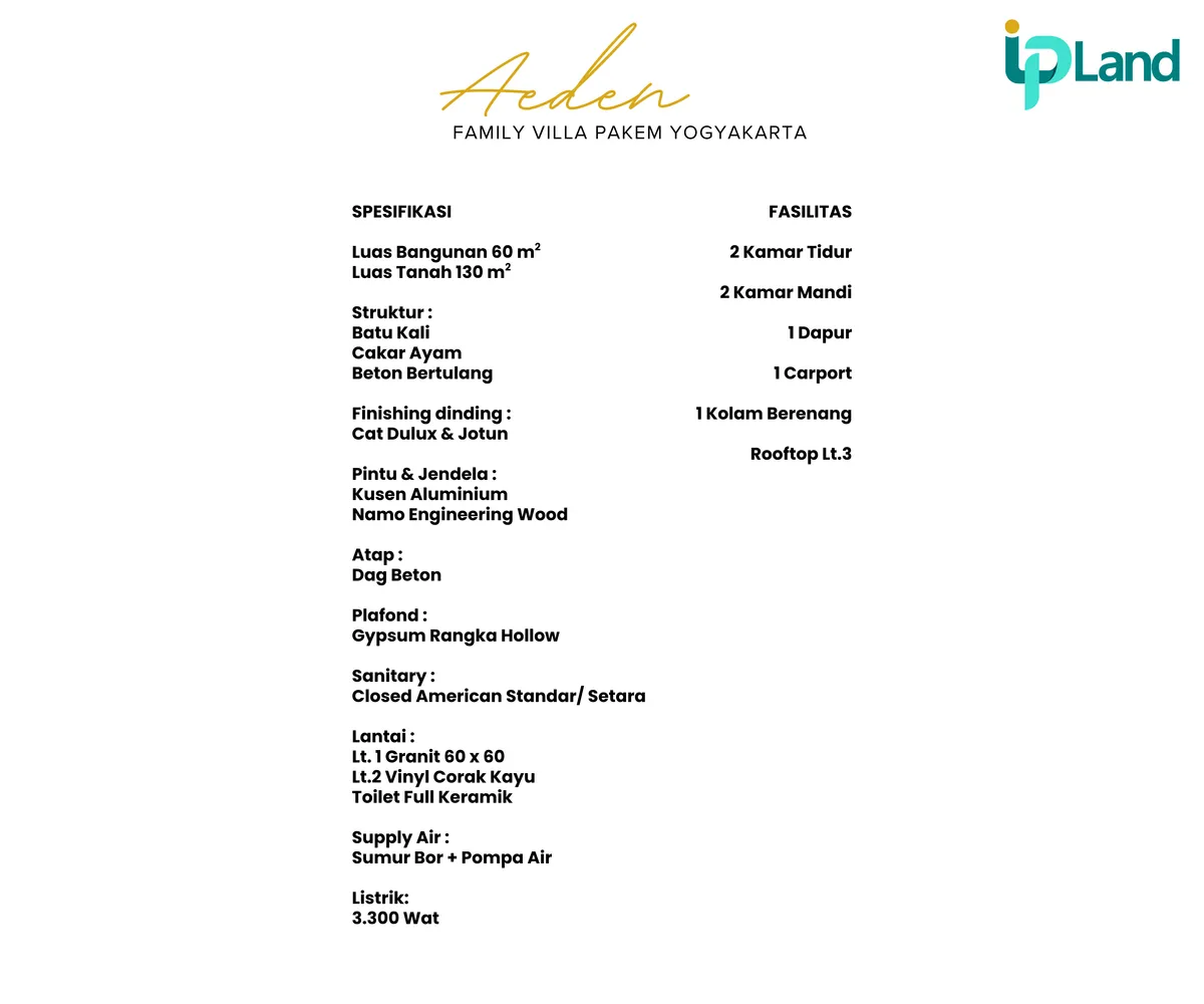 Pakem dikenal sebagai kawasan villa dengan permintaan tinggi dari wisatawan. Villa ini memiliki potensi passive income dari penyewaan harian maupun mingguan.